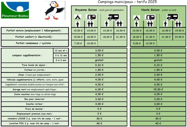 Camping municipal Pleumeur-Bodou tarif 2025